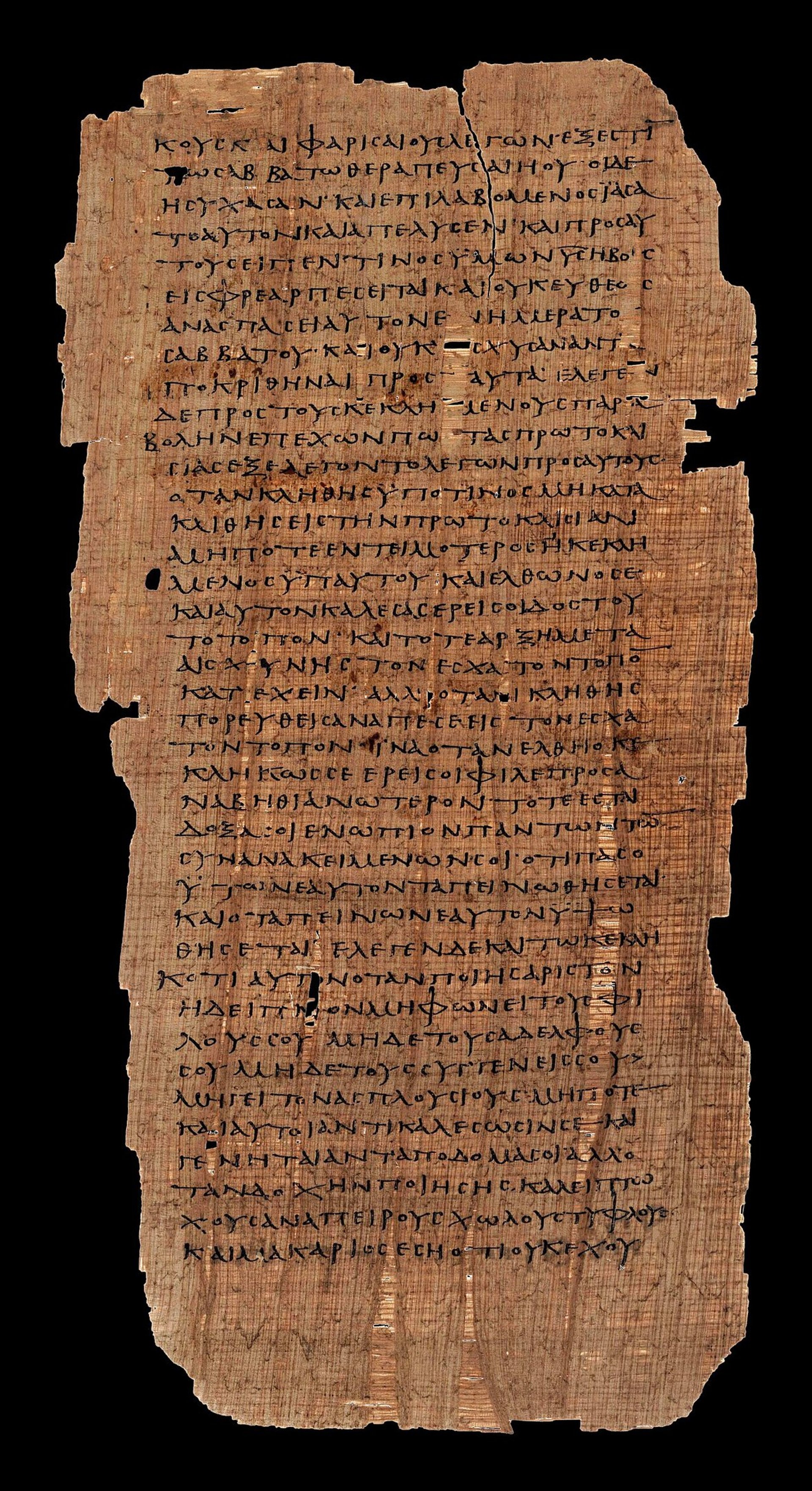 The final stage involves applying controlled aging techniques that emulate the chromatic and environmental changes observed in ancient papyri. This includes subtle tonal modulation, fiber darkening, and the simulation of oxidation patterns. Selective hand‑applied accents bring the replica to life, such as nomina sacra, ink density shifts, faded strokes, and scribal corrections are highlighted to reflect the manuscript’s paleographic character. This approach honors the original artifact’s visual language.